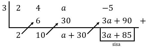 Suku banyak dibagi bersisa 85, nilai dari a adalah...