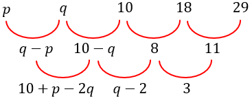 Suku ke-14 dari barisan aritmetika bertingkat p, q, 10, 18, 29, ... adalah ....