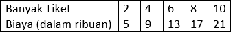 a. Salin dan lengkapi tabel berikut untuk membantu Susi menentukan total biaya berdasarkan banyak tiket permainan yang dia beli.
