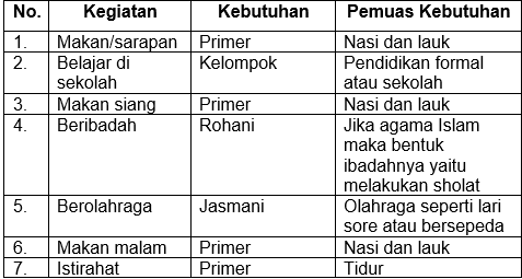 Susun kebutuhan dalam waktu 24 jam dari mulai bangun sampai dengan tidur lagi!