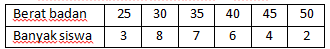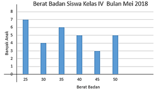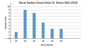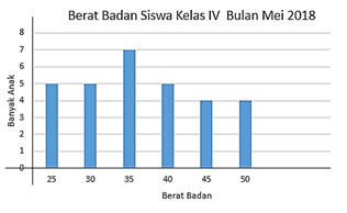 Tabel berat badan siswa kelas IV bulan MEI 2018.