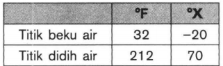 Tabel berikut memperlihatkan perbandingan skala Fahrenheit dan skala X