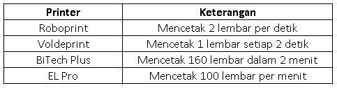 Tabel berikut menunjukkan kecepatan empat merek printer. Printer manakah yang mencetak paling cepat?