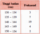 Tabel berikut menunjukkan tinggi badan (dalam cm) sejumlah siswa SMA.
