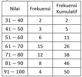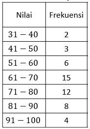 Tabel berikut merupakan nilai ujian fisika siswa kelas X.