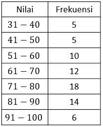 Tabel berikut merupakan nilai ujian matematika siswa kelas X.