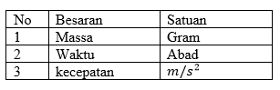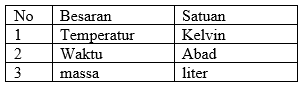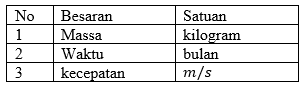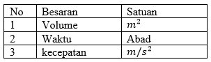 Tabel berikut yang menunjukkan besaran dengan satuannya yang tepat adalah ....
