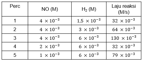 Tabel data hubungan laju reaksi : pada berbagai konsentrasi.