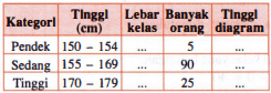 Tabel di bawah ini menunjukkan data tinggi 120 orang. Gambarlah histogramnya dengan kategori pendek (150-154); sedang ( 155-169); dan tinggi (170-179).