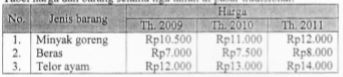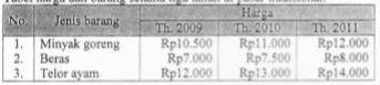 Tabel harga dan barang selama tiga tahun di pasar tradisional: