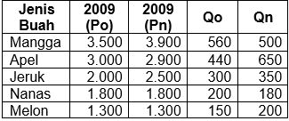 Berdasarkan data di atas besar indeks harga menurut Laspeyres tahun 2009 adalah ....