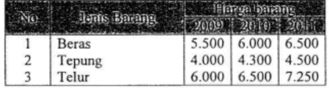 Tabel jenis dan harga barang yang terjadi selama 3 tahun sebagai berikut: