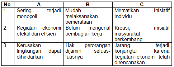 Tabel kebaikan dan keburukan sistem ekonomi: