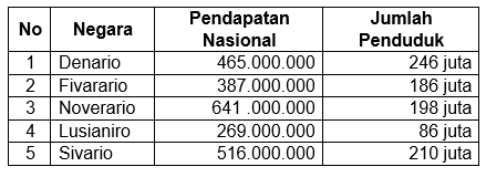 Tabel negara dengan pendapatan nasional dan jumlah penduduk tahun 2015.