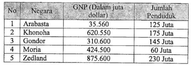 Tabel pendapatan nasional dan jumlah penduduk dari 5 Negara pada tahun 2011