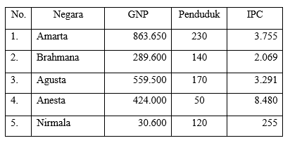 Tabel pendapatan nasional dan jumlah penduduk dari beberapa negara pada tahun 2011.