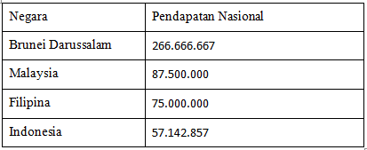 Tabel pendapatan nasional dan jumlah penduduk dari beberapa negara terligat sebagai berikut : (dalam miliar rupiah)