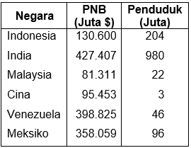 Negara yang memiliki pendapatan per kapita tertinggi dan terendah adalah ....