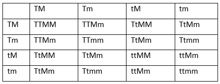 Tanaman berbatang tinggi dan berbuah manis (TTMM) disilangkan dengan tanaman berbatang rendah serta berbuah masam (ttmm). Berapa persenkah tanaman bergenotipe berbatang tinggi dan berbuah masam serta tanaman berbatang rTendah berbuah masam apabila persilangan sampai F2?
