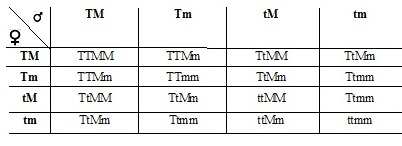 Tanaman kacang tinggi dominan terhadap pendek, warna merah dominan terhadap putih. Jika tanaman kacang bergenotip heterozigot disilangkan dengan sesamanya maka diharapkan diperoleh keturunan dengan perbandingan....
