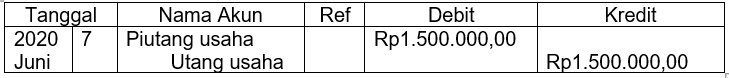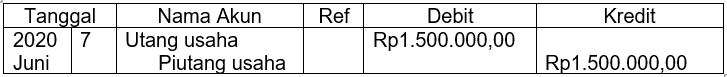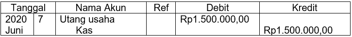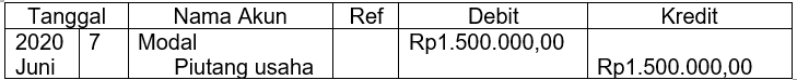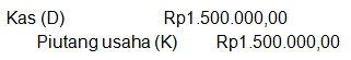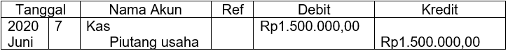 Tanggal 7 Juni 2020 Pak Ali menerima pelunasan piutang usaha dari pelanggan sebesar Rp1.500.000,00. Pencatatan jurnal umum yang benar atas transaksi tersebut adalah ....