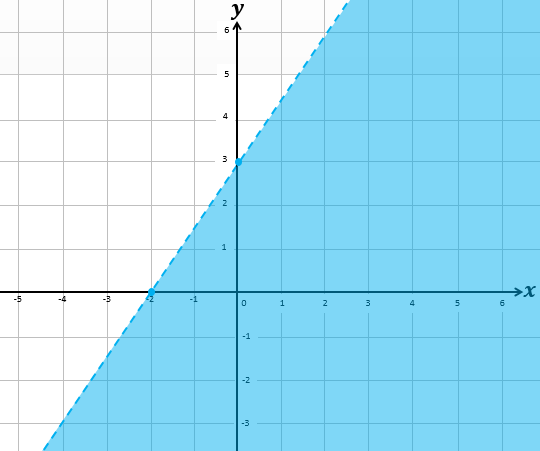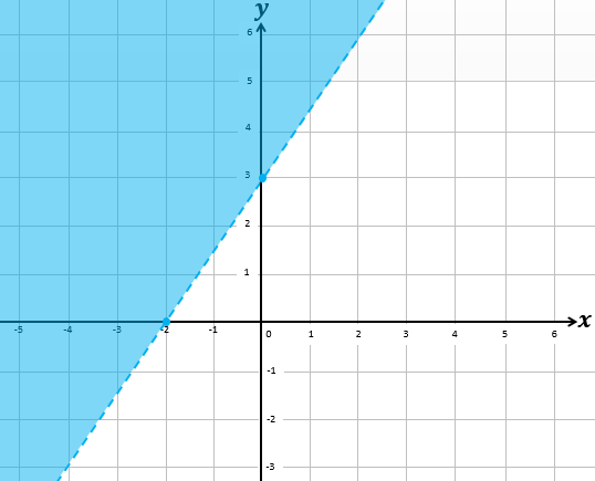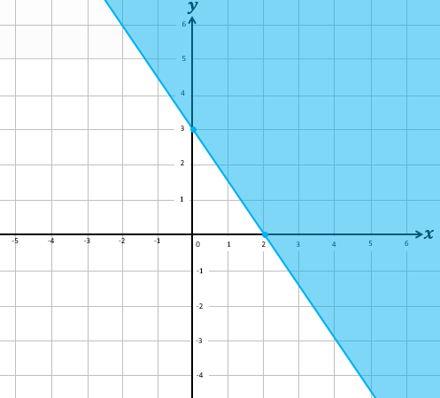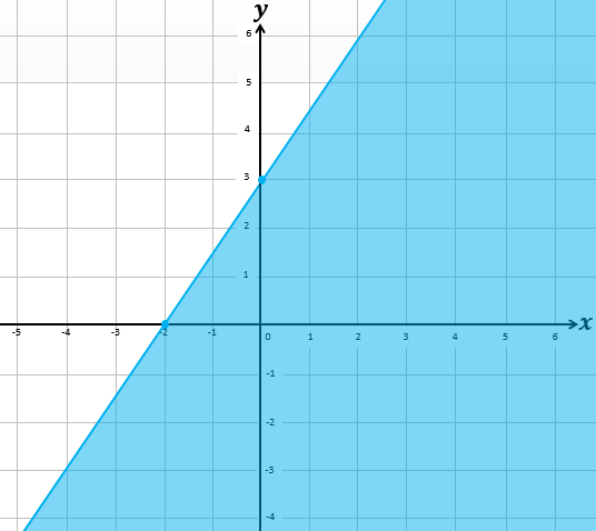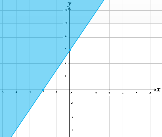 Tanpa menggunakan uji titik, gambar daerah penyelesaian dari 2y - 3x ≥ 6 adalah ....
