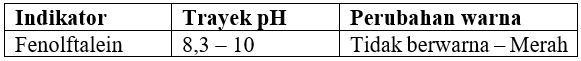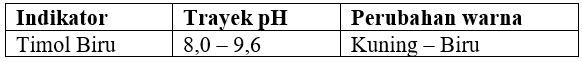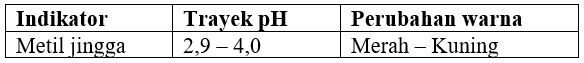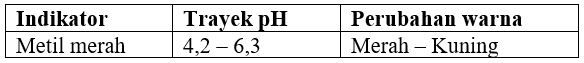 Tasya melakukan percobaan titrasi asam basa kuat di sekolah. Tasya diminta untuk menentukan indikator yang digunakan untuk titrasi 15 mL larutan HBr dengan 7,5 mL larutan NaOH dengan konsentrasi 0,02M. Indikator yang tepat untuk melihat perubahan warna titik ekivalen reaksi, kecuali …