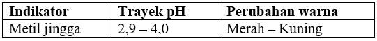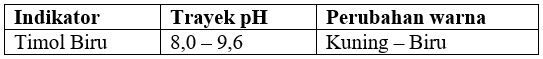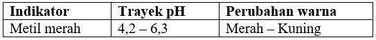 Tasya melakukan percobaan titrasi asam basa kuat di sekolah. Tasya diminta untuk menentukan indikator yang digunakan untuk titrasi 15 mL larutan HBr dengan 7,5 mL larutan NaOH dengan konsentrasi 0,02M. Indikator yang tepat untuk melihat perubahan warna titik ekivalen reaksi, kecuali ....