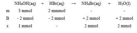 Tegar memiliki 30 mL larutan amonia () dengan pH sebesar 11. Larutan tersebut kemudian dititrasi dengan 10 mL larutan HBr 0,2 M. Campuran yang terbentuk akan memiliki pH sebesar ....