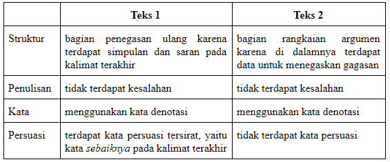 Teks 1: seluruh kata yang digunakan merupakan kata denotasi