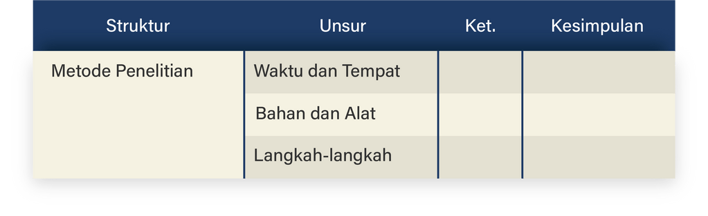 Telaahlah struktur teks laporan percobaan tersebut dengan memberikan tanda centang (v) pada kolom keterangan jika memang informasi tersebut benar ada dalam teks laporan percobaan dan berikan kesimpulanmu.