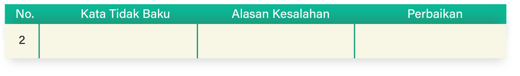 Temukan, tandai, salin, dan perbaikilah 5 kata yang ejaan penulisannya tidak baku dalam teks laporan tentang Suku Baduy tersebut. Tulislah pada kolom berikut.