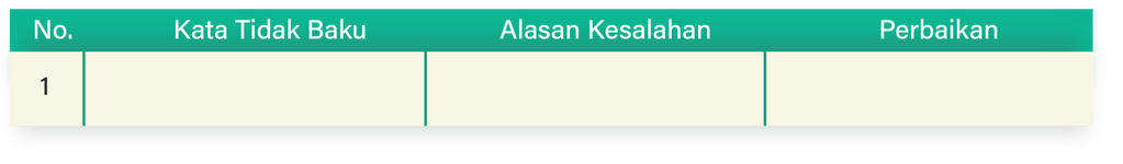 Temukan, tandai, salin, dan perbaikilah 5 kata yang ejaan penulisannya tidak baku dalam teks laporan tentang Suku Baduy tersebut. Tulislah pada kolom berikut.