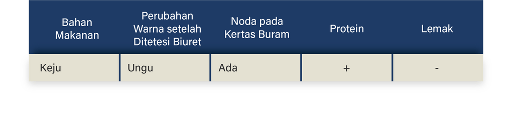1) Apabila keju mengandung protein, biuret akan menghasilkan warna ungu/warna lembayung.