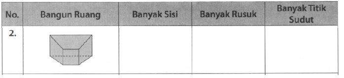 Tentukan banyak sisi, rusuk, dan titik sudut pada bangun ruang berikut
