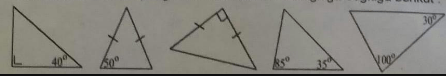 Tentukan besar sudut yang belum diketahui dari segitiga-segitiga berikut: