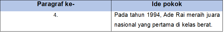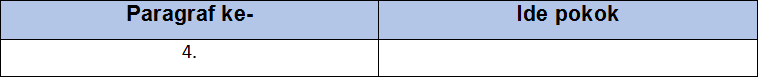 Tentukan ide pokok dari paragraf ke-4 bacaan di atas. Tuliskan dalam bentuk tabel seperti berikut!