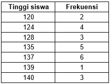 Tentukan modus dari data tinggi badan siswa kelas VI berikut!