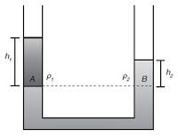 Tentukan tinggi zat cair 1 yang mempunyai massa jenis 600 kg/m3, jika tinggi zat cair 2 (h2) adalah 1 cm dan massa jenis zat cair 2 adalah 1.200 kg/m3!