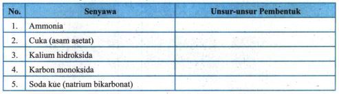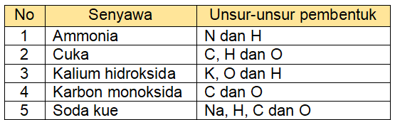 Tentukan unsur-unsur pembentukan dari senyawa berikut ini!