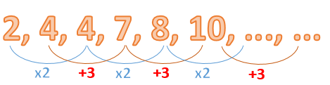 Terdapat barisan 2, 4, 4, 7, 8, 10, …, ... dua bilangan berikutnya adalah…
