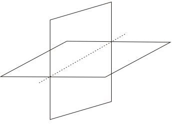 Terdapat dua bidang saling berpotongan dan tidak berhimpitan, maka perpotongannya berbentuk ...