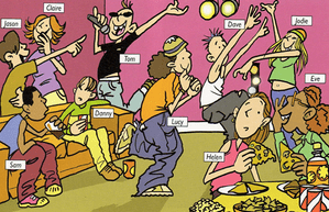 The following sentences describing the picture above don't use correct form of present continuous tense, except ...