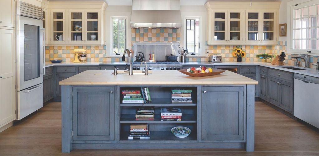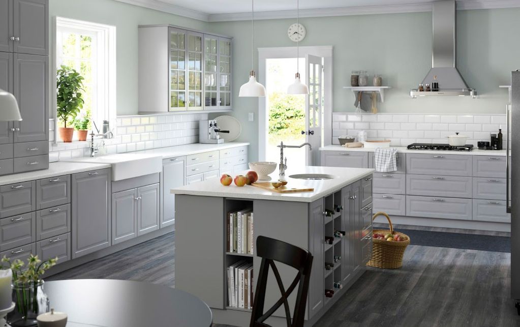 The kitchen is very clean and tidy. There’s no chair in the kitchen, but there are some books in the cupboard. It seems that the owner of the house loves to read. There’s a sink on the right side.