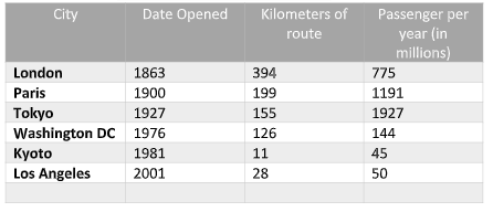 According to the table, the oldest underground railway service provider and the one that also covers the longest rail routes is in ....