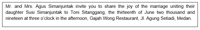 Toni Sitanggang is Mr. and Mrs. Agus Simanjuntak’s son.