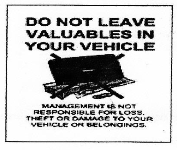 You are prohibited to leave valuables in your vehicle.