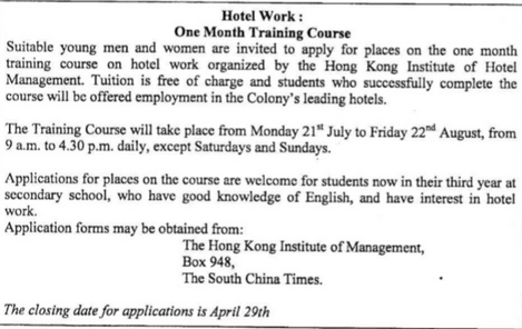 membership of the Hong Kong Institute of Hotel management