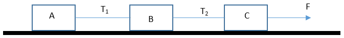 Tiga balok A, B dan C terletak di bidang datar yang licin seperti pada gambar.