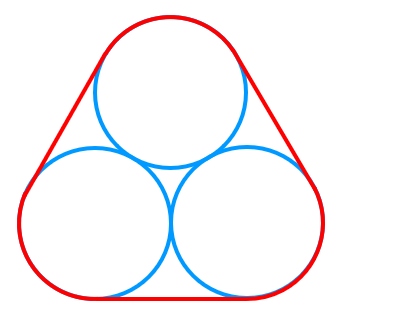 Tiga buah kaleng disusun dan diikat dengan tali yang penampangnya digambarkan seperti berikut ini.